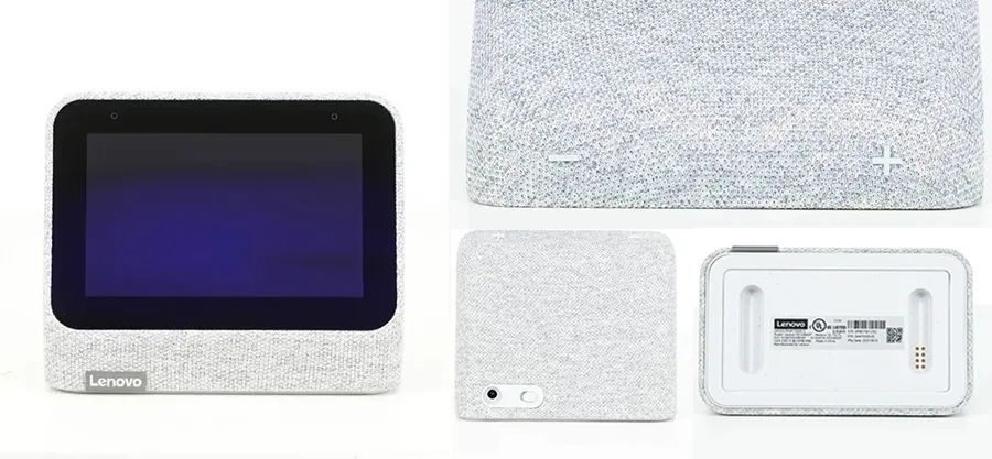 联想智能时钟2代延续初代产品锥体造型设计,外壳粘贴布艺材质,提升手感颜值同时还起到一定的保护作用,屏幕微倾给用户更好的视觉效果。机身正面左下角设计有Lenovo品牌,配备4英寸彩色触摸屏,大屏幕视觉效果更好,操作也简单方便。机身其余部分全部粘贴布艺材质,端角过渡圆润,持握不硌手。