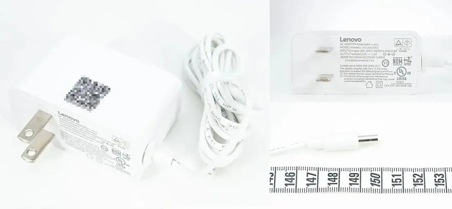适配器采用PC材质白色外壳,配备固定美规插脚,自带DC圆头输出线缆。输入端外壳印有适配器参数,型号为AD18W2002,支持100-240V~50/60Hz 0.8A输入以及12V1.5A输出,通过了NOM、NYCE、UL、PSE认证,以及VI级能效认证。测得适配器输出线缆长度约1.5米。