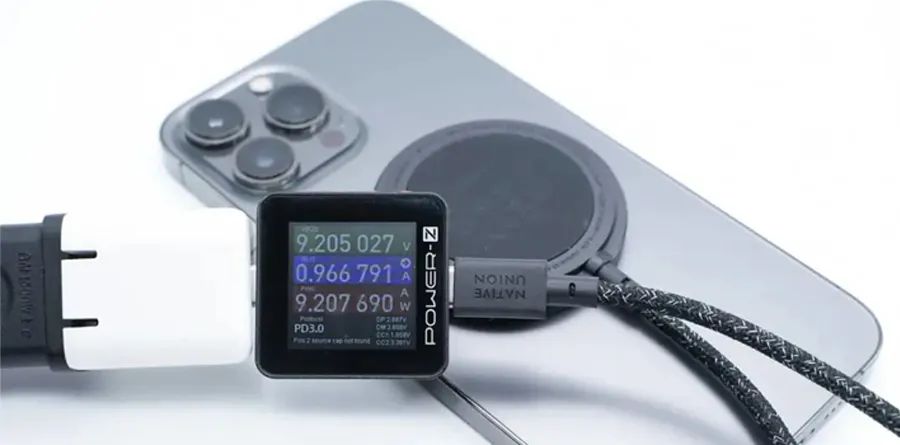 给iPhone 13Pro Max进行无线充电,使用ChargerLAB POWER-Z KM002C测得输入功率为9.2V 0.97A 9.21W。