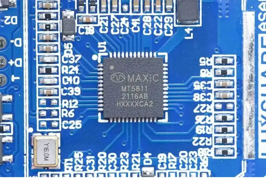16MHz无源晶振,为MT5811无线充电主控提供时钟,晶振右上角RT1热敏电阻用于检测无线充电器温度,进行过热保护功能。