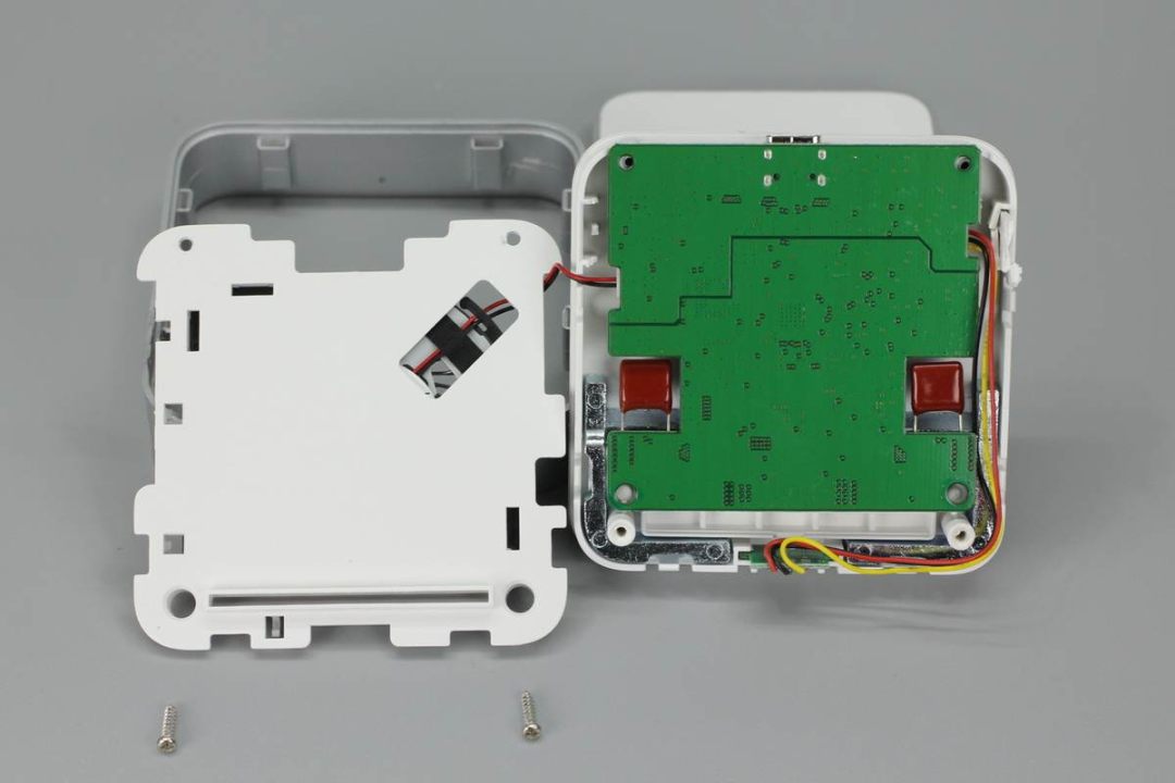 拆掉两颗螺丝即可将底部外壳打开,风扇使用卡扣进行固定,并且风扇和PCB板间有一块白色塑料板进行隔离。
