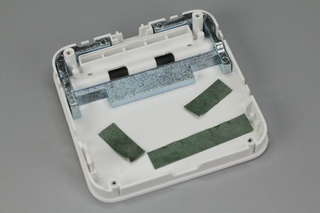 底座外壳上固定有铁块配置,此外贴有三条青稞绝缘纸。