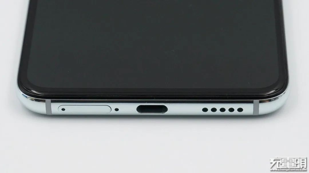 底部设有SIM卡插槽、麦克风孔、USB-C口和扬声器孔。