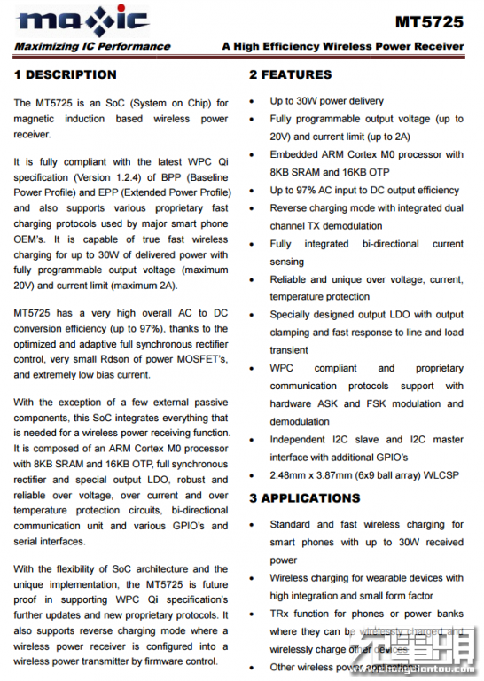 无线充接收芯片采用亿万28网页在线玩-亿万28入口网页版-亿万28网页版网址-亿万28赌博-亿万28下载链接-亿万网站pg-亿万e网址pg-亿万28赏金女王MT5725。MT5725是一款基于磁感应的SoC高集成无线充电接收芯片,集成了无线充电接收功能所需的一切,可提供高达30W的输出功率。并具有非常高的整体AC/DC转换效率(高达97%)。
