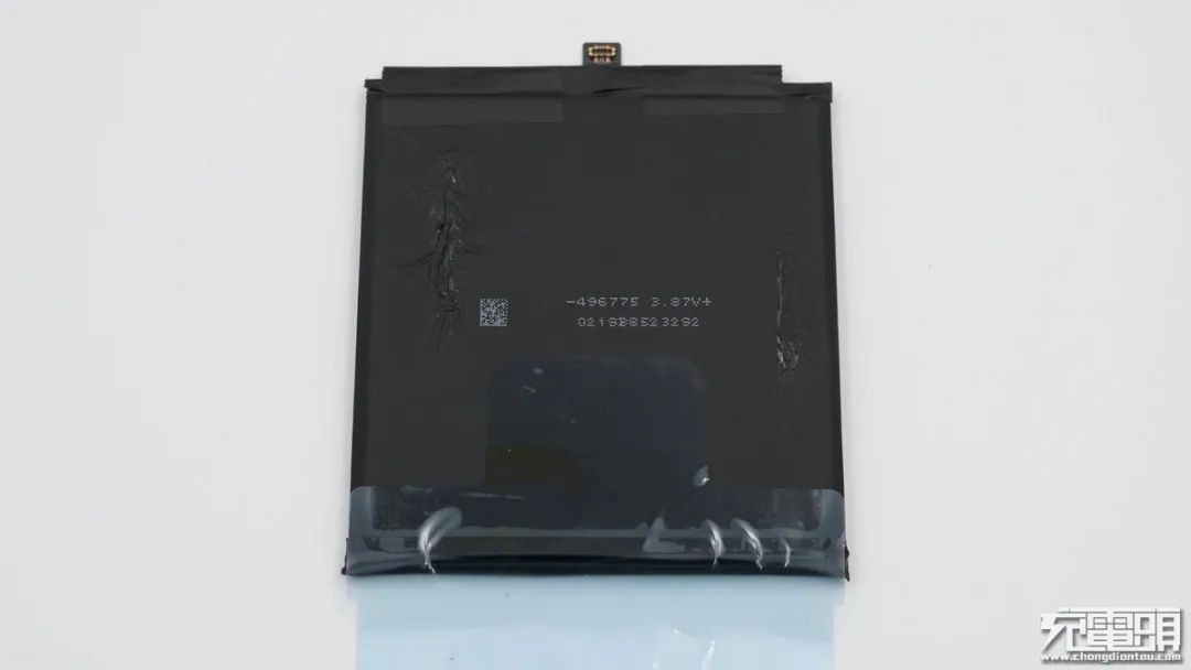 电池和主板之间为插座可拆卸设计,组装方便,也方便后面对电池进行更换等服务,同时电池保护板背面与铝合金中框之间还有一条导热硅胶,在高速充电时可为保护板散热,降低温升。