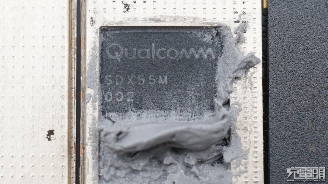 高通 SDX55M,第二代5G调制解调器,由导热硅胶覆盖散热。