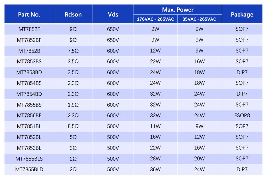 ■ 可以和老一代APF非隔离芯片MT7842B系列及同类竞品系列进行直接替换,不需焊接COMP电容、RC补偿,不需要重画PCB。