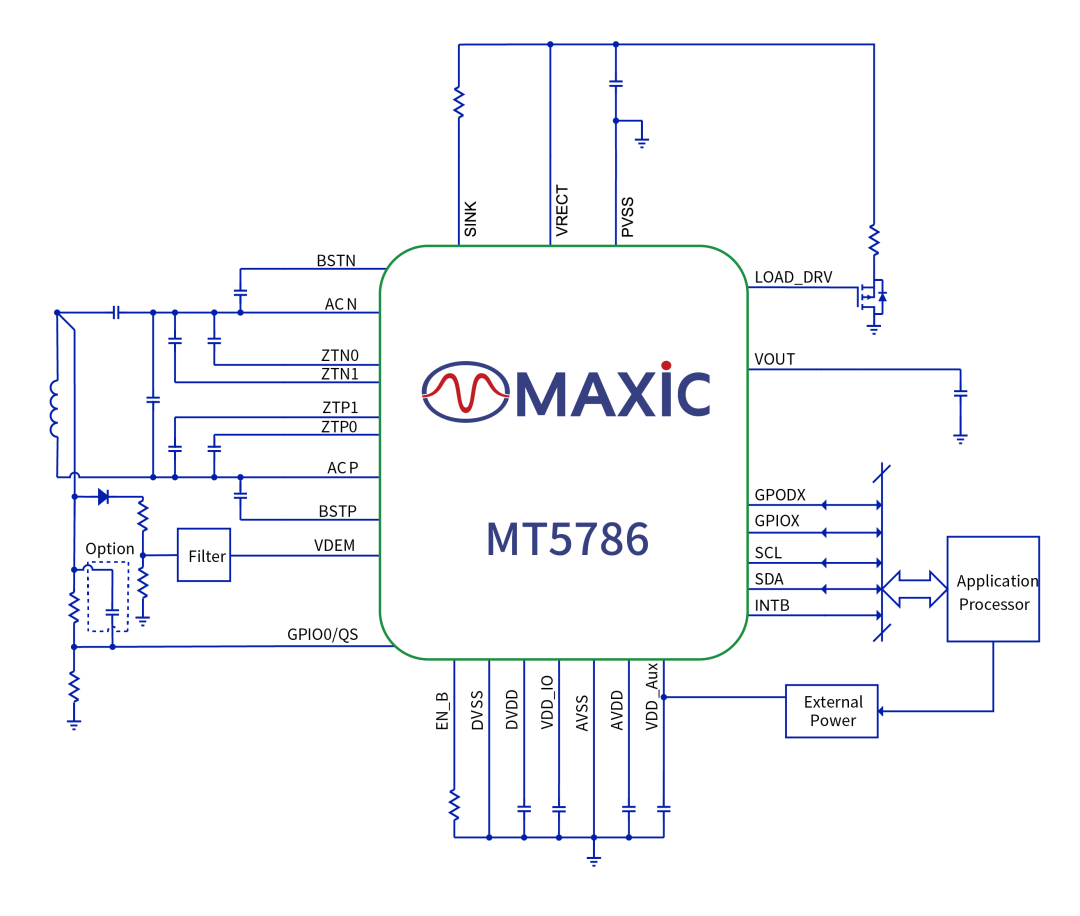 除少数外部无源元器件之外,MT5786集成了无线充电接收端所需的所有元器件。新的开发工艺将MT5786尺寸做到2.79mm*4.19mm,是同等规格芯片面积的一半,极大缩小占板面积,让手机等设计更加紧凑美观,更便于防水防尘设计。
