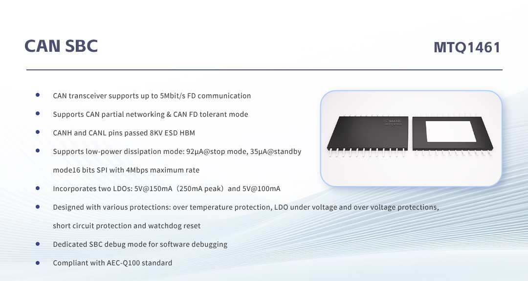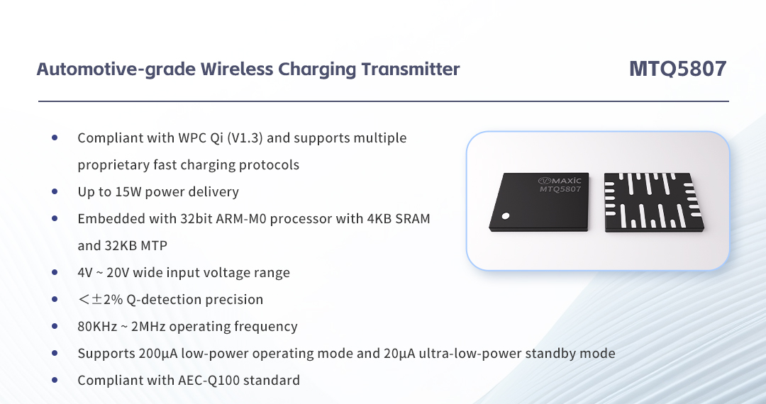 A number of automotive-grade chips of Maxic are included in the Catalogue, such as CAN SBC, in-vehicle wireless charging chips, LED drivers for car light, etc. This highlights industry recognition of Maxic Technology's automotive-grade products and its competitiveness in the automotive electronic field.