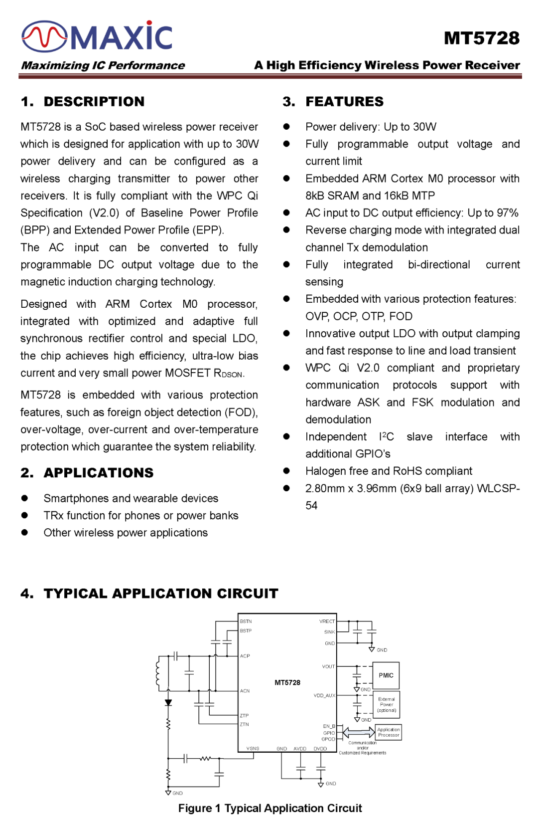 MT5728是一颗符合WPC Qi 2.0规范的无线充电接收端芯片,支持BPP/EPP,最高达30W无线充电,同时具备10W反向充电功能,为其他接收端供电。内置ARM M0处理器,搭配8KB SRAM和16KB MTP存储器,支持私有无线充电协议,芯片内部集成同步整流器和LDO。